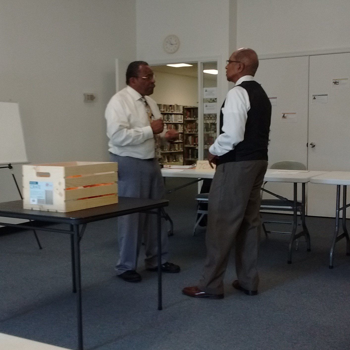 Dr, Talley and Dr. Tyler Milner, facilator, chat prior to conference designed to define communication channels between PBA stakeholders.